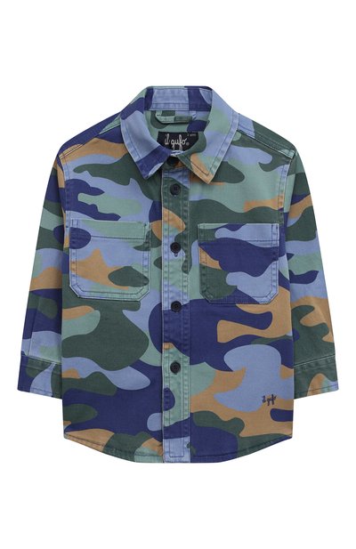 Для пошива рубашки с камуфляжным разноцветным мотивом использовали прочный, но легкий деним с добавлением волокон эластана. Такой м атериал немного тянется, поэтому прямая модель с двумя накладными карманами не создает ощущения скованности, практически не мнется и не деформируется от частых стирок. В качестве декора – вышитый логотип бренда.
