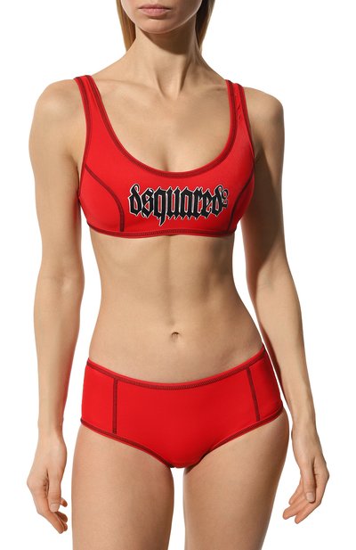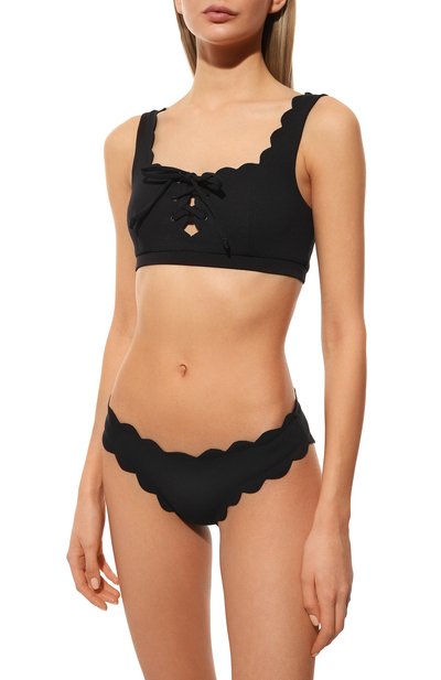 Бра-топ Palm Springs с узким поясом сшили из быстросохнущего фактурного полиамида. Узкие бретели и глубокие квадратные вырезы с двух сторон отделали фестонами, вырезанными вручную.