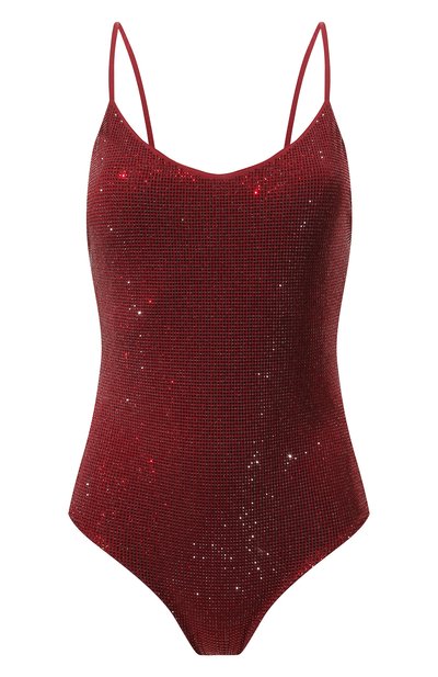 Слитный купальник из эластичной микрофибры полностью покрыли кристаллами в тон спереди. Принадлежность модели с узкими бретелями марке обозначили нашивкой с контрастным логотипом сзади.