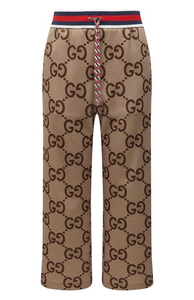 В коричневых укороченных брюках из весенне-летней коллекции марки, основанной Гуччио Гуччи, будет комфортно и на прогулке, и в путешествии. Модель выполнили по всем канонам стиля athleisure: свободный крой, как у спортивных моделей, не сковывает движения, а мягкое джерси с обновленным GG-паттерном отвечает за leisure. Широкий пояс-кулиску изготовили из фактурного трикотажа с полосами в цветах ленты Web.