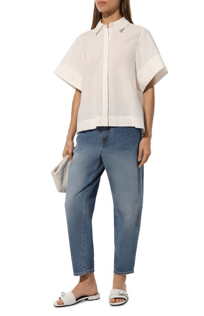 Потертые джинсы из коллекции сезона весна-лето 2022 года неаполитанские мастера выполнили из плотной ткани, созданной на старинном станке. Для нее требуется в несколько раз больше хлопковых нитей, чем для обычной, поэтому полотно получается особенно прочным. За счет добавленных в состав эластичных волокон модель хорошо садится по фигуре, не сковывает движения и не вытягивается.