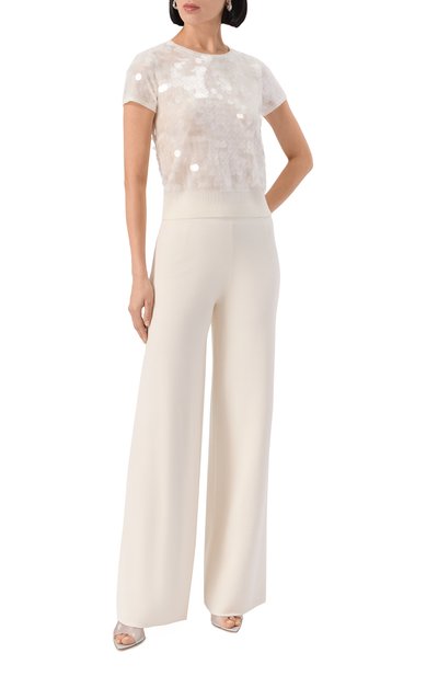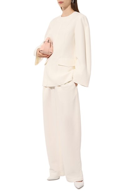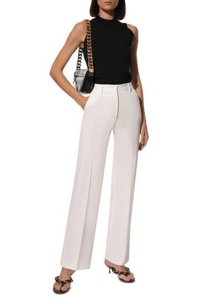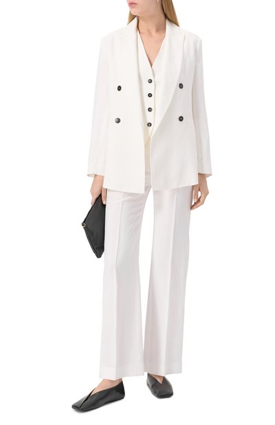 В случае с кипенно-белыми брюками из весенне-летней коллекции 2022 года не придется выбирать между элегантным внешним видом и комфортом. Для изготовления модели со стрелк ами, визуально удлиняющими ноги, использовали тонкую ткань на основе мягкого льна, который особенно хорошо пропускает воздух и слегка охлаждает кожу. Чтобы вещь меньше мялась, в состав материала добавили шелковистую вискозу. За удобную посадку на талии отвечает широкий регулируемый пояс-кулиска.