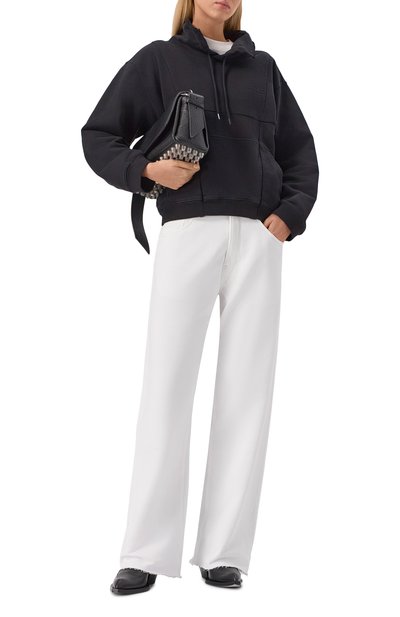 В случае с кипенно-белыми брюками из весенне-летней коллекции 2022 года не придется выбирать между элегантным внешним видом и комфортом. Для изготовления модели со стрелками, визуально удлиняющими ноги, использовали тонкую ткань на основе мягкого льна, который особенно хорошо пропускает воздух и слегка охлаждает кожу. Чтобы вещь м еньше мялась, в состав материала добавили шелковистую вискозу. За удобную посадку на талии отвечает широкий регулируемый пояс-кулиска.