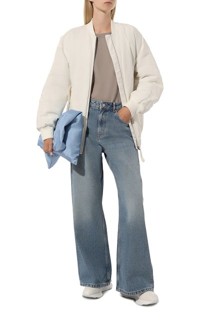 В прямой ветровке нежного салатового оттенка будет комфортно и на неспешной прогулке в городе, и во время пробежки в парке. Для пошива модели из весенне-летней коллекции использовали легкое, но при этом очень прочное нейлоновое микроволокно, которое не промокает и не продувается ветром. Дополнительную защиту обеспечивают высокий ворот с регулируемой кулиской и герметичная молния. Рукава декорировали широкой текстильной лентой с жаккардовыми логотипами.