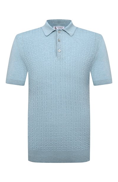 В весенне-летнюю коллекцию вошло голубое поло. Для изготовления модели с фактурным вязаным узором спереди мастера марки использовали тончайший трикотаж из прочных волокон шелка и дышащего хлопка. Изделие из легкого материала комфортно садится по фигуре и не пилингуется со временем, надолго сохраняя безупречный вид.