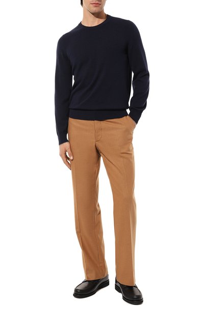 Джемпер с манжетами, поясом и горловиной в рубчик связали из тонкой шерсти. На принадлежность марке указывает небольшая брендированная пластина снизу.
