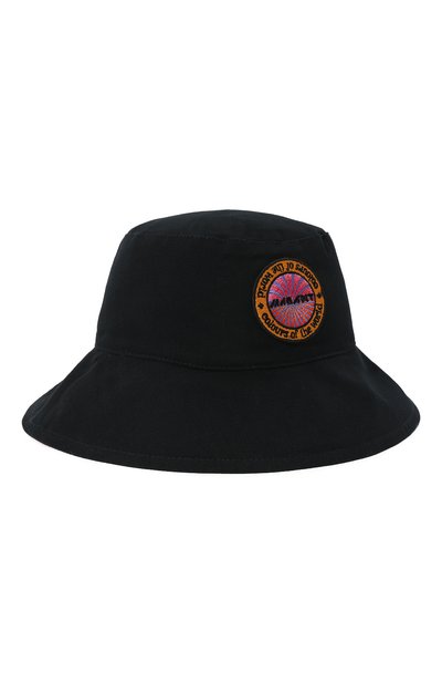 Двустороннее исполнение панамы позволяет носить ее темно-синей однотонной или разноцветной графичной стороной наружу. Аксессуар с прямыми стегаными полями сшили из мягкой хлопковой ткани, которая хорошо пропускает воздух, не допуская перегрева головы. Для декора использовали круглый вышитый патч с логотипом марки.