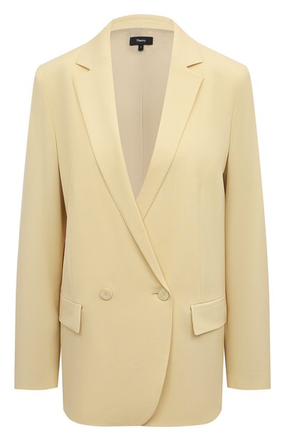 При создании бежевого пиджака использовали принципы ответственного производства и материалы из отслеживаемых источников. Ткань для модели с узкими лацканами соткали на итальянской фабрике из тончайшей шерсти мериноса. Ее бережно состригли с овец, выращенных с заботой на ферме Бофронт в Тасмании, вычесали и обработали вручную, не применяя химические вещества.