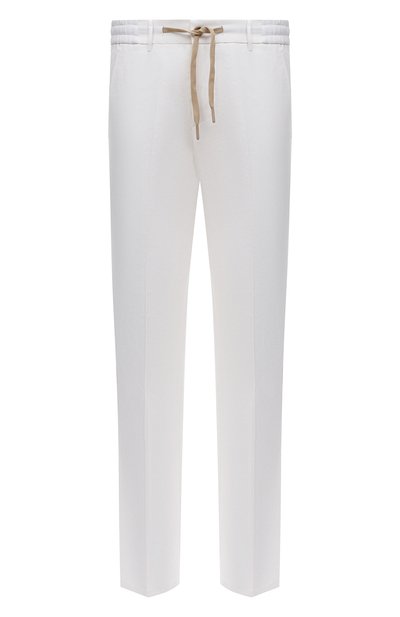 Команда бренда сделала эти кипенно-белые брюки особенно легкими и дышащими, выбрав для их пошива тонкий хлопок. Волокна материала соединили со льном, поэтому чуть зауженная модель с эластичным поясом-кулиской немного охлаждает тело в солнечные летние дни.