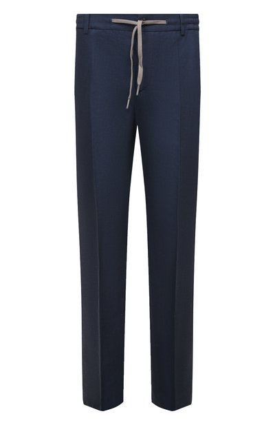 В исполнении команды марки темно-синие брюки со стрелками стали особенно комфортными. Традиционный пояс со шлевками для ремня заменили эластичным, с регулируемой кулиской. Тему удобства поддержали и материалом, выбрав для пошива модели тонкий, хорошо пропускающий воздух хлопок с добавлением волокон льна, способного слегка охлаждать кожу.