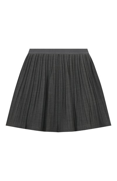 Темно-серую плиссированную юбку с эластичным поясом сшили из мягкой полушерстяной ткани стрейч. Чтобы тонкий материал стал прочнее, его усилили нитями легкого полиэстера. В такой расклешенной модели будет комфортно и на школьных занятиях, и на внеклассных меропри ятиях.