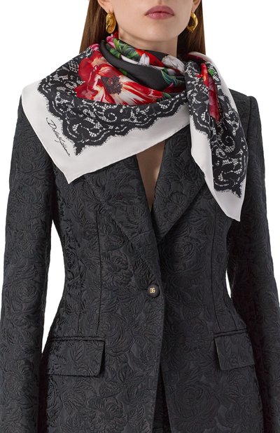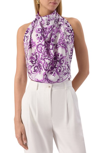 Платок с принтом Majolica можно повязать вместо топа или подчеркнуть им ручку сумки. Для создания аксессуара с подшитыми вручную краями выбрали шелковый твил.