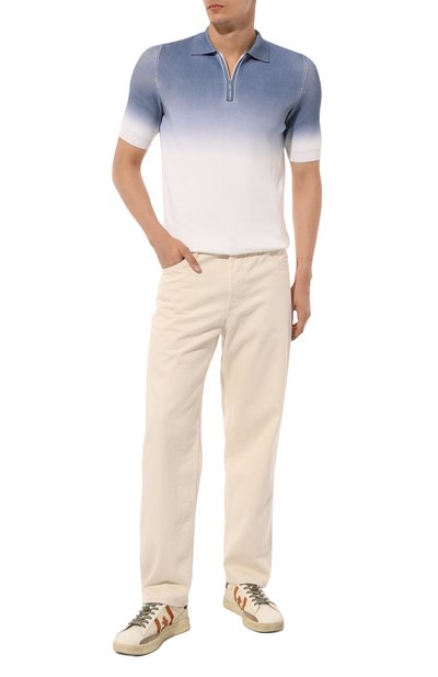 Это поло голубого оттенка выглядит достаточно нейтрально, чтобы быть уместным и на веранде кафе, и в офисе в free friday. Правильный тон задают лаконичный крой, ненавязчивые белые полоски и демократичный меланжевый узор на пике из длинноволокнистого хлопка. Мастера марки сделали сетчатый трикотаж очень тонким, поэтому лаконичная модель едва ощущается на теле.