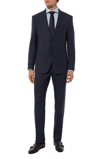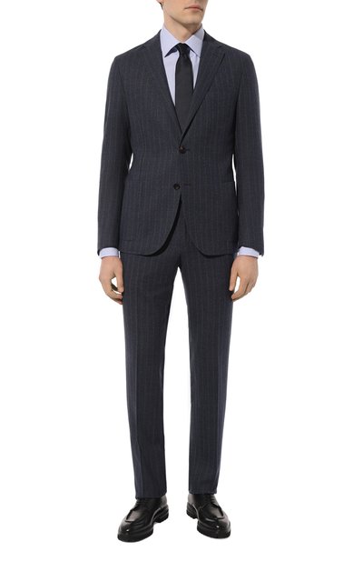 Сорочку с воротником акула, подходящим для галстуков любой ширины, сшили из гладкого хлопкового поплина. Лаконичная модель поможет освежить формальный образ с темным однотонным костюмом.