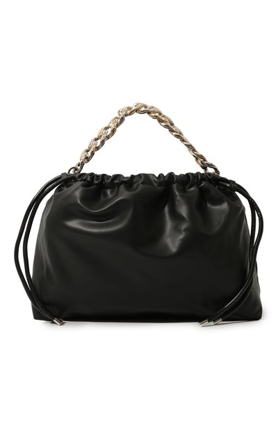 Короткая ручка на этой черной сумке Eva играет не только функциональную, но и декоративную роль: деталь выполнили в виде подчеркнуто крупной цепи с глянцевым золотистым и серебристым покрытием. Для изготовления объемной модели мастера марки использовали мягкий материал, напоминающий матовую кожу. Внутрь аксессуара со съемным плечевым ремнем поместятся небольшой складной зонт, кошелек, смартфон и флакон любимого аромата.