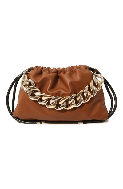 Мастера марки сшили небольшую сумку Eva из тонкого текстиля. Покрытие из прочного непромокаемого полимера делает его похожим на мягкую мелкозернистую кожу. Из такого же материала изготовили съемный плечевой ремень и прямоугольный футляр, а короткую массивную ручку сделали похожей на цепь, словно вылитую из желтого золота.