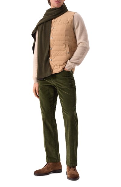 Коричневые ботинки с объемным швом на союзке мастера марки, основанной Джоном Ричардсоном Барреттом, сшили из мягкой бархатистой замши, а для отделки голенища использовали крупнозернистую кожу с матовым блеском. Верх соединили с легкой рельефной подошвой вручную по фирменной технологии, поэтому обувь адаптируется к форме стопы.