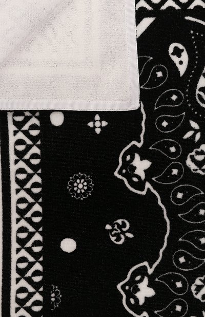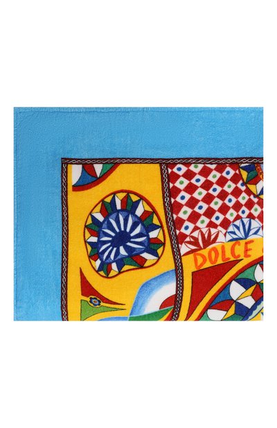 Для изготовления прямоугольного полотенца цвета фуксии мастера марки использовали бархатистый хлопок с узором, вдохновленным майоликой Кальтаджироне. Неравномерно прокрашенный орнамент выглядит так, будто его нанесли на полотно вручную. Мотив заключили в широкую кайму на несколько тонов темнее основного оттенка.