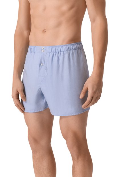Мастера марки сшили голубые свободные боксеры из тонкого хлопкового поплина. Этот материал хорошо пропускает воздух и не вытягивается после частых стирок. Модель с застегивающейся на пуговицу ширинкой дополнили эластичным поясом, который не впивается в кожу.