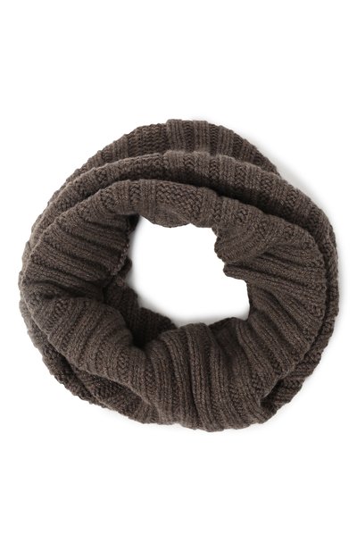 Мастера марки связали шарф-снуд в технике английской резинки из мягкой легкой пряжи, нежный кашемир в составе которой объединили с прочной шерстью. Аксессуар из такого материала хорошо сохраняет тепло и защищает шею от ветра, при этом практически не ощущаясь на коже.