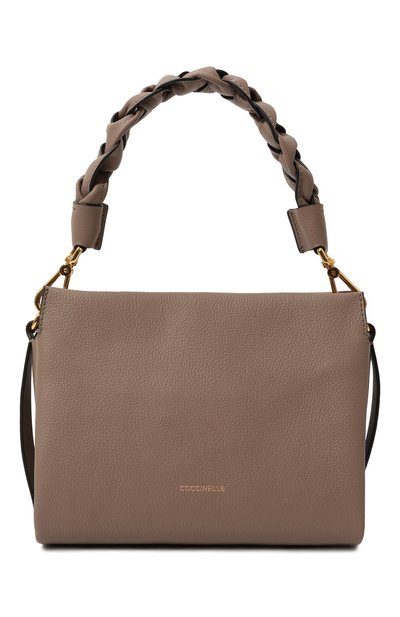 Лаконичный вид темно-бежевой сумки Boheme можно немного обновить, сменив узкий плечевой ремень на широкую плетеную ручку. Эти детали, как и сам корпус, мастера марки изготовили из матовой зернистой кожи. Основное отделение и внутренний боковой карман закрываются молниями. В аксессуар поместятся смартфон, паспорт и ключи.
