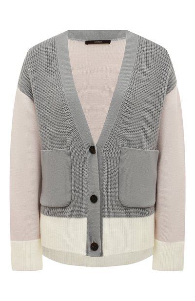 Кардиган с глубоким V-образным вырезом, длинными рукавами и накладными карманами выполнен в технике color block из мягкой шерстяной пряжи с шелковистой текстурой. Модель с небольшими разрезами по бокам застегивается на пуговицы. Наши стилисты предлагают сочетать с шортами и мюлями черного цвета.