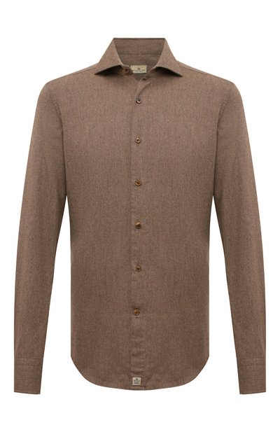 Коричневая рубашка подружится и с классическими брюками, и с джинсами. Для пошива модели с длинными рукавами мастера марки использовали мягкий фактурный хлопок. Материал предварительно обработали по специальной технологии, поэтому он долго сохранит яркость оттенка.