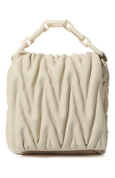 При нейтральном кремовом оттенке и отсутствии декора сумка Sanira получилась выразительной. Мастера марки выполнили на модели из нежной наппы объемный шевронный узор. Заданную им геометричность поддерживает пластиковая ручка-цепочка с крупными квадратными звеньями. Кроме нее в аксессуаре предусмотрели плечевой ремень. Внутри поместятся кошелек, футляр с очками и смартфон.