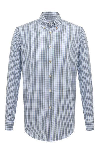 Синюю клетчатую рубашку с воротником button down и длинными рукавами мастера марки сшили вручную из мягкой дышащей ткани. Для ее производства использовали премиальный хлопок. Его волокна тоньше, прочнее и эластичнее обычного, а в гладкости не уступают шелку, поэтому материал получился приятным на ощупь и почти не мнется.