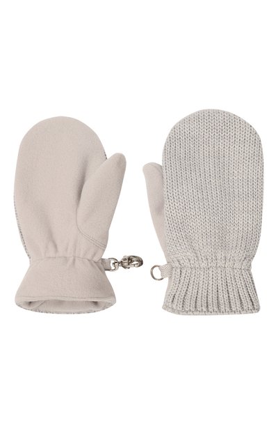 Чернильно-синие варежки выполнили из мягкой плотной шерсти, а для отделки ладонной стороны использовали легкий быстросохнущий флис. Широкую манжету дополнили эластичной вставкой, чтобы снег не попадал внутрь, и карабином с кольцом для соединения полупар между собой на время хранения.