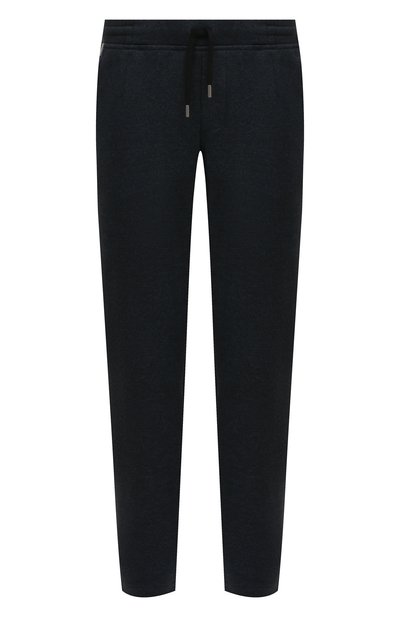 Брюки приглушенного темно-синего оттенка получились максимально комфортными. За это отвечают заниженная линия шага, не сковывающая движения, и широкий пояс-кулиска, который не впивается в тело. Удобной модель делает и дышащий хлопковый материал с добавлением прочных шерстяных нитей.