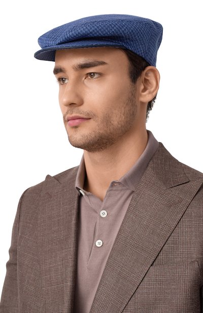Для изготовления темно-синей кепки мастера марки использовали фактурный материал на основе шерсти и шелка. В состав включили волокна кашемира, которые сделали аксессуар еще более теплым, но при этом легким. Чтобы освежить модель, достаточ но ее просто встряхнуть.