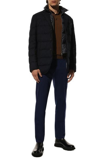 Чуть зауженные брюки темно-синего оттенка кажутся похожими на джинсы только издали. Вблизи становится заметным эластичный пояс-кулиска, а плотный деним оборачивается тонким твилом стрейч на основе лиоцелла. Такой материал делает модель легкой, словно льняная курортная одежда, и в то же время оставляет ее по-городскому сдержанной.