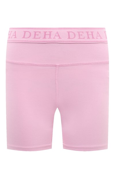 Для пошива облегающих шорт оттенка ягодного пирожного макарон использовали мягкий трикотаж из гипоаллергенног о органического хлопка с добавлением прочной эластичной лайкры. Дышащий материал не перегревает кожу во время тренировок и легко тянется, обеспечивая полную свободу движений. Широкий пояс-резинку, который не сдавливает и не перекручивается, декорировали жаккардовым логотипом.