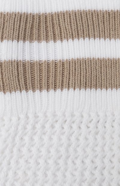 Для создания гольфов в рельефную полоску выбрали кашемировую пряжу с добавлением полиэстера. Модель оттенка Anthracite дополнили широкой эластичной манжетой в мелкий рубчик.