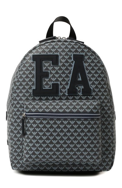 Синий рюкзак с паттерном в виде эмблемы бренда долго будет выглядеть как новый. Аксессуар сшили из фактурного материала, который не промокает и легко очищается от загрязнений. Модель с эргономичной спинкой, снижающей нагрузку на плечи и позвоночник, дополнили накладным карманом.