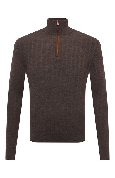 Мастера марки выполнили джемпер с короткой молнией спереди из мягкой легкой пряжи приглушенного коричневого оттенка. Для ее создания отобрали только самые длинные и нежные волокна шерсти премиальных сортов, поэтому материал особенно хорошо сохраняет тепло и практически не ощущается на коже.