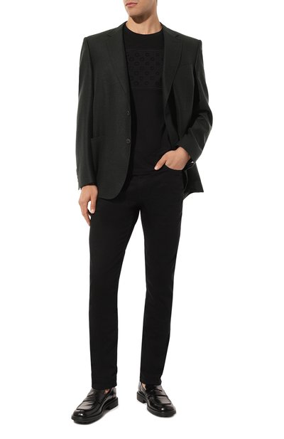 Приталенная футболка с короткими рукавами получилась максимально приятной на ощупь. За это отвечает легкий трикотаж универсального черного оттенка. Мягкий хлопок в его составе объединили с шелковистыми нитями модала, поэтому материал хорошо пропускает воздух и слегка тянется, повторяя каждое движение тела.