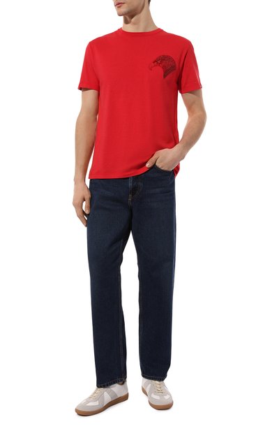 Неоново-красная футболка – простой способ ввести яркий цвет в повседневный гардероб. Для пошива модели с короткими рукавами мастера марки, основанной Стефано Риччи, использовали тонкое джерси из премиального хлопка и прочного шелковистого модала. Изделие из такого приятного на ощупь материала не вытягивается и не подвержено пилингу, поэтому надолго сохранит безупречный вид. Принадлежность вещи бренду обозначили небольшой эмблемой с покрытием из драгоценного металла.