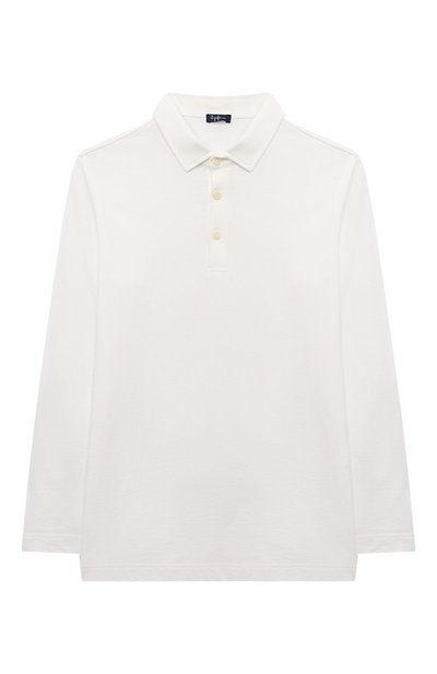 Белоснежное поло с длинными рукавами выполнили из нежного эластичного джерси. Для изготовления материала использовали гипоаллергенный хлопок, поэтому изделие не раздражает кожу, хорошо пропускает воздух и быстро отводит влагу. Спереди модель украсили небольшим логотипом, вышитым шелковистой нитью в тон.