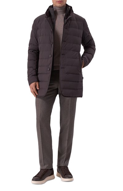 В куртке Master T на утином пуху, сшитой из полушерстяной ткани, будет комфортно при температуре до -5°С. Модель, напоминающую блейзер, дополнили съемным утепленным нагрудником с трикотажным воротником-стойкой. Изделие с боковыми и внутренним карманами на молниях застегивается пуговицами.