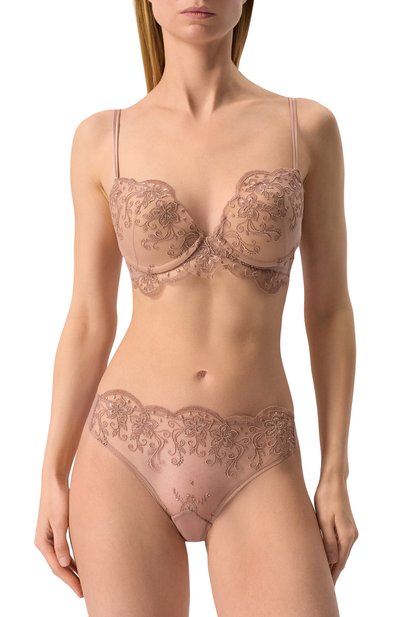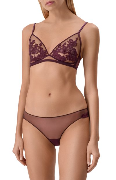 Для изготовления слипов использовали полупрозрачный эластичный тюль. По бокам модель декорировали цветочным кружевом в тон.