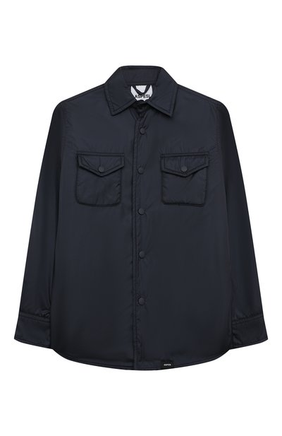 Синюю прямую куртку стилизовали под рубашку с отложным воротником, длинными рукавами и накладными нагрудными карманами. Для пошива модели мастера марки использовали тонкий шелковистый нейлон, который защищает от ветра. Чтобы сделать изделие теплее, внутри предусмотрели почти невесомый слой синтепона.