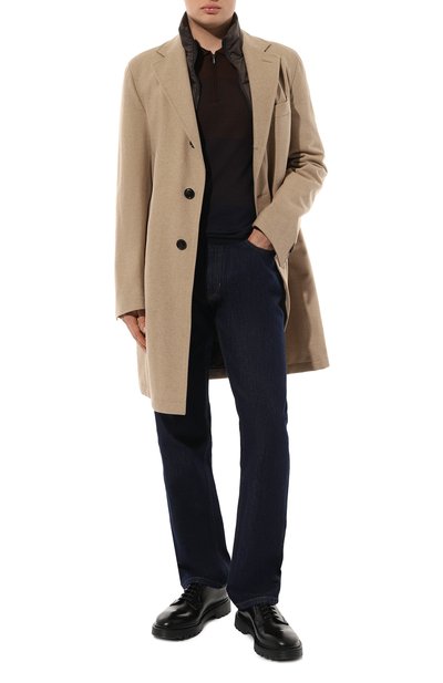 Создавая коричневое поло, команда марки особое внимание уделила комфорту. Лаконичную модель, украшенную лишь узким кантом бежевого оттенка, выполнили из особенно легкого, тонкого трикотажа, поэтому она не создает лишнего объема под верхней одеждой. Мягкую шерсть дополнили волокнами гладкого шелка и нежного каше мира, сделавшими изделие теплым и исключительно приятным на ощупь.