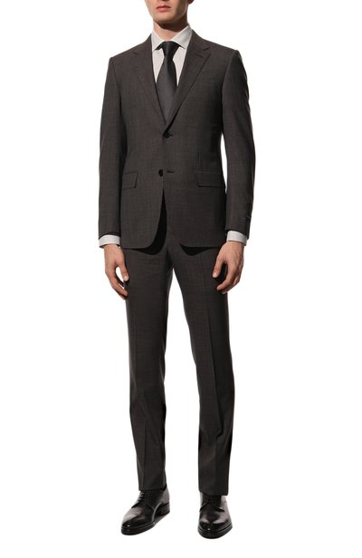 Меланжевую рубашку сшили из мягкой ткани на основе хлопка с добавлением легкого кашемира. Сама модель и скошенные манжеты застегиваются фирменными пуговицами в форме октагона.