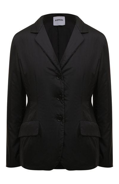 Дизайнеры марки, основанной Альберто Аспези, стилизовали черную куртку под приталенный однобортный пиджак. Для пошива модели они выбрали прочный шелковистый нейлон, который не промокает и не продувается ветром. Тонкий слой утеплителя Thermore согревает не хуже натурального пуха, при этом не утяжеляя изделие и не создавая лишний объем.