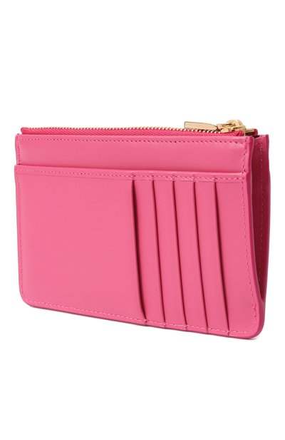 Для создания компактного картхолдера с объемной монограммой DG спереди мастера марки использовали плотную кожу насыщенного оттенка молодой травы. Материал хорошо держит заданную форму и почти не боится царапин и потертостей. У изделия с четырьмя слотами предусмотрели отсек, в котором удобно хранить чеки.