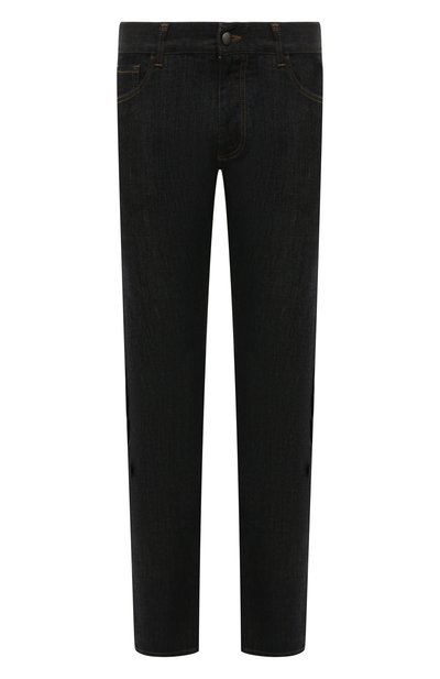 Темно-синие джинсы из мягкой, слегка эластичной хлопковой ткани с плотным переплетением нитей оставили без потертостей и декора (только кожаный брендированный патч на поясе сзади). Со временем такие брюки подстроятся под особенности фигуры и обретут индивидуальные черты.