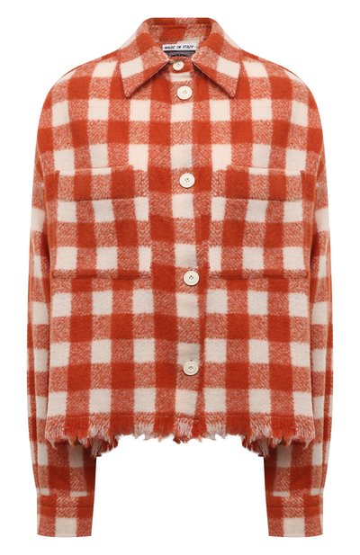 Оранжевый оттенок клетчатой рубашки поможет ей стать акцентной деталью образа. Модель с отложным воротником сшили из мягкой фактурной шерсти с добавлением нежного кашемира, поэтому она получилась особенно теплой. Чтобы изделие с бахромой по краю не вытянулось со временем, ткань усилили нитями нейлона.