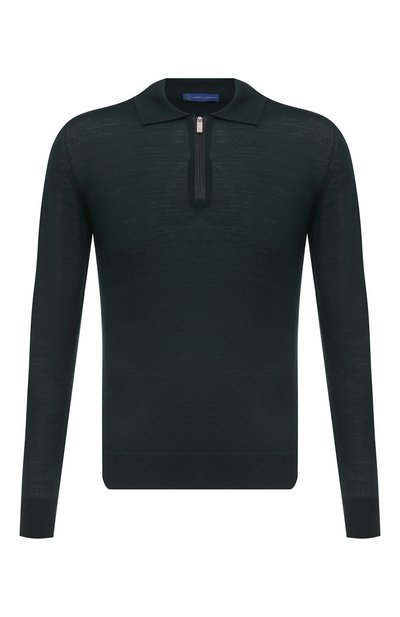 Темно-зеленое облегающее поло с длинными рукавами и короткой молнией спереди сшито из тонкого шерстяного трикотажа. Мягкий материал позволяет телу дышать, сохраняет тепло и комфортно облегает тело, не ограничивая движения. Наши стилисты предлагают создать образ с брюками, кроссовками и плащом черного цвета.